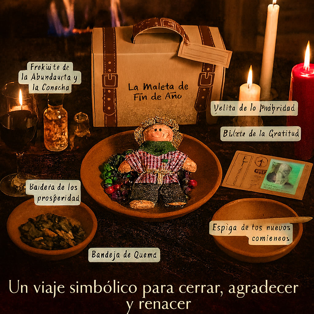 Es un kit ritual inspirado en la tradición colombiana del Año Viejo, pero llevado a una versión moderna, íntima y llena de magia.